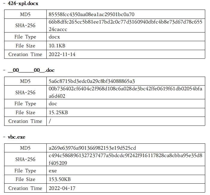 최종적으로 00____00__.doc 파일에서 vbc.exe라는 실행 파일을 다운로드 받는 것을 확인할 수 있었다.