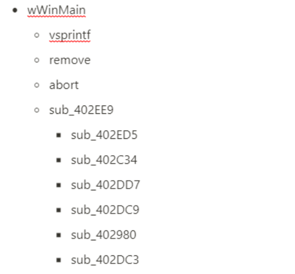 내부에서 호출되는 함수 같은 경우 WinAPI를 제외하고 vsprintf, scanf, remove, abort, sub_402EE9 함수가 호출되는 것을 확인할 수 있다. abort로 프로그램을 비정상적으로 종료하는 것으로 보아 dwBytes가 3이면 안 되는 것 같다. 어쨌든 dwBytes가 3이 아니면 조건문을 건너뛰고, sub_402EE9 함수로 넘어가게 된다.