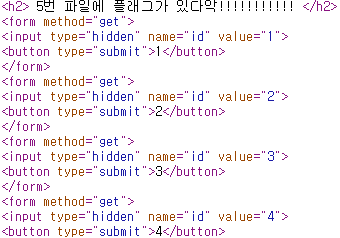 문제를 열어보면 "5번 파일에 플래그가 있다악!!!!!!!!!!!" 라는 문구와 함께 버튼이 4개가 나오고 있다.