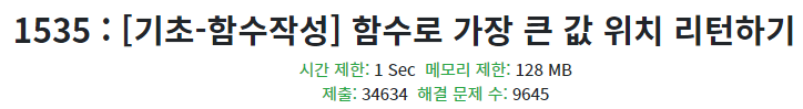 문제에서 가장 큰 값이 처음 등장하는 위치를 출력하라고 나와 있었기 때문에,