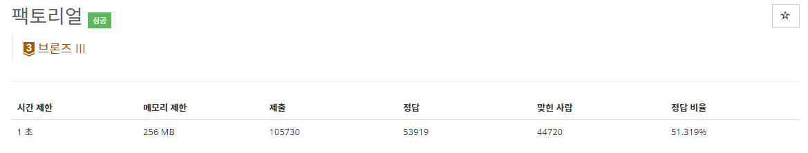 [BOJ] 10872번 "팩토리얼" C언어 풀이 본문