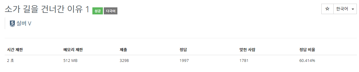 첫 줄에 소가 길을 건너간 최소 횟수를 출력한다.