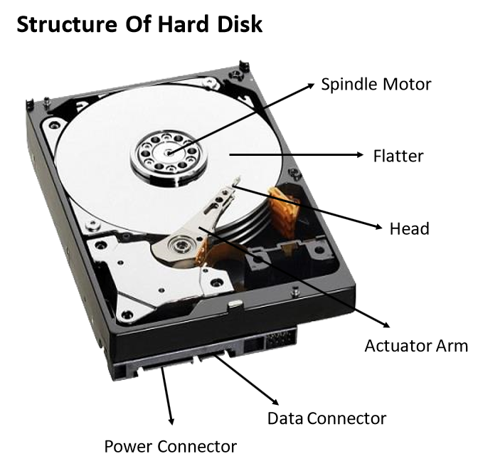 HDD는 작동할 때 Spindle Motor에 의해 회전하는 Flatter를 Actuator Arm을 이용하여 Head를 원하는 장소에 이동시킨 다음 끝에 달린 Head를 이용하여 Flatter에 저장된 정보에 접근합니다. Flatter의 겉 면은 자성물질로 덮여있어 Head가 Flatter 위를 지나가며 Flatter의 자기 배열을 변화시키는 식으로 데이터를 저장하거나 수정, 삭제합니다. HDD는 Flatter 겉 면의 자기 배열 상태를 보고 제대로 정렬되어 있으면 1 아니면 0으로 판단합니다. 이때 Head와 Flatter 사이의 간격은 매우 근접하여 만일 작동 중 전원의 공급이 끊기거나 중간에 충격이 가해진다면 HDD가 파손될 수 있어 매우 조심해야 합니다.